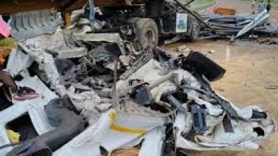 अनियंत्रित ट्रेलर पुलिया से टकराया, लोहे के पाइप गिरे; दो गंभीर