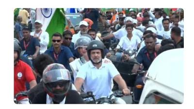 स्टाइलिश अंदाज़ में राहुल गांधी, बहन प्रियंका संग निकले वोटर अधिकार यात्रा पर