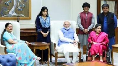 वसुंधरा राजे अपने परिवार के साथ पहुंचीं प्रधानमंत्री नरेंद्र मोदी से मिलने