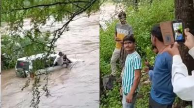 मेडिकल ऑफिसर्स की गाड़ी पानी में बही, खजूर के पेड़ में अटककर चमत्कारिक ढंग से बचीं जानें—लोग बोले: ये तो किसी फिल्मी सीन से कम नहीं”