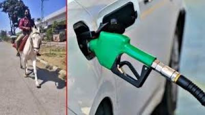 पेट्रोल नहीं मिला तो घोड़े पर निकला कर्मचारी, देवास का वीडियो वायरल
