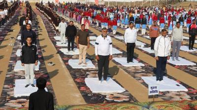 मंत्री पटेल के मुख्य आतिथ्य में नरसिंहपुर में आयोजित हुआ सामूहिक सूर्य नमस्कार कार्यक्रम