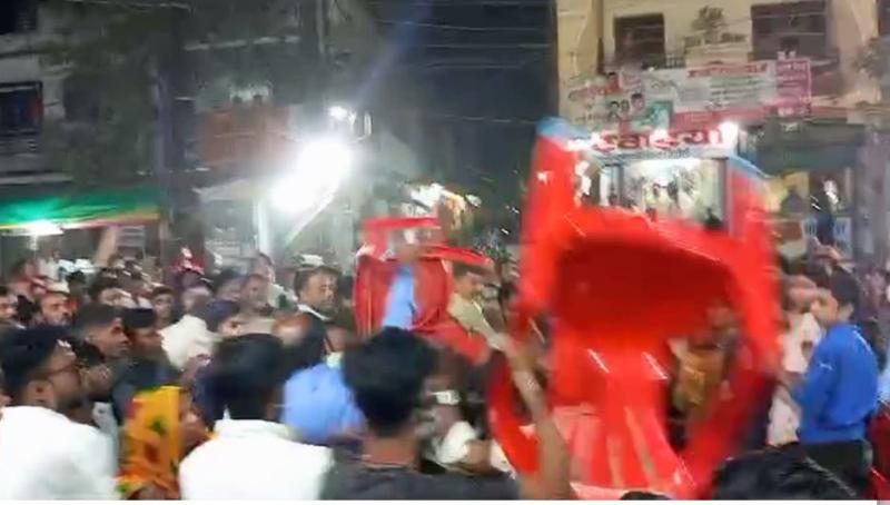 उज्जैन: जिला मुख्यालय से 60 किलोमीटर दूर महिदपुर तहसील में आज भगवान भोलेनाथ की सवारी निकाली गई। सवारी में जहां एक और पूरा नगर भगवान भोलेनाथ की भक्ति में लीन नजर आया तो वहीं दूसरी और भाजपा व कांग्रेस के कार्यकर्ताओं में विवाद हो गया।