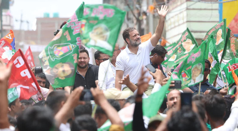 45 किलोमीटर तक दिखी भीड़ की लहर: राहुल और तेजस्वी के रोड शो ने मचाया सियासी शोर