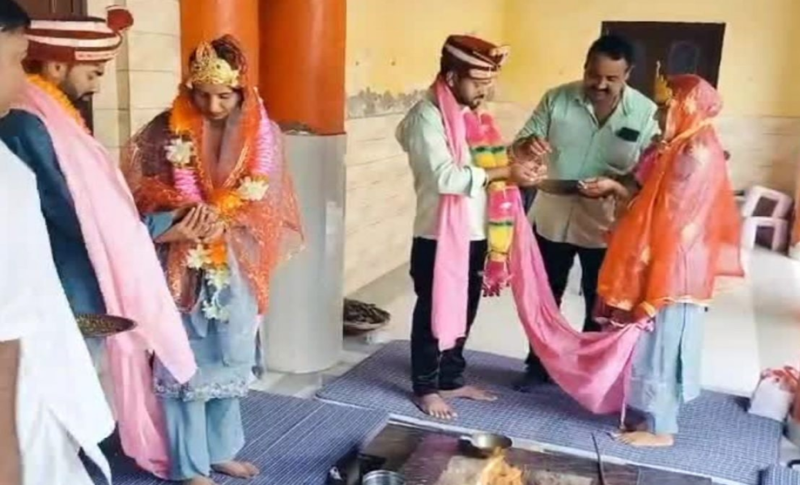 मजहब से ऊपर उठकर दो बहनों ने रचाई शादी, मंदिर में लिए सात फेरे