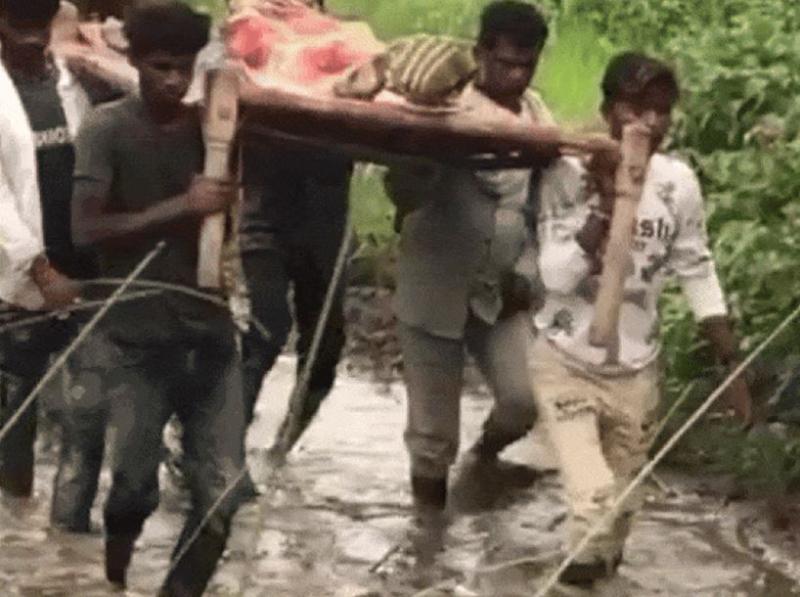 बीमार को अस्पताल ले जाने के लिए सड़क नहीं मिली, इंसानियत ने रास्ता बनाया – खाट पर 2 किलोमीटर चले गांव वाले