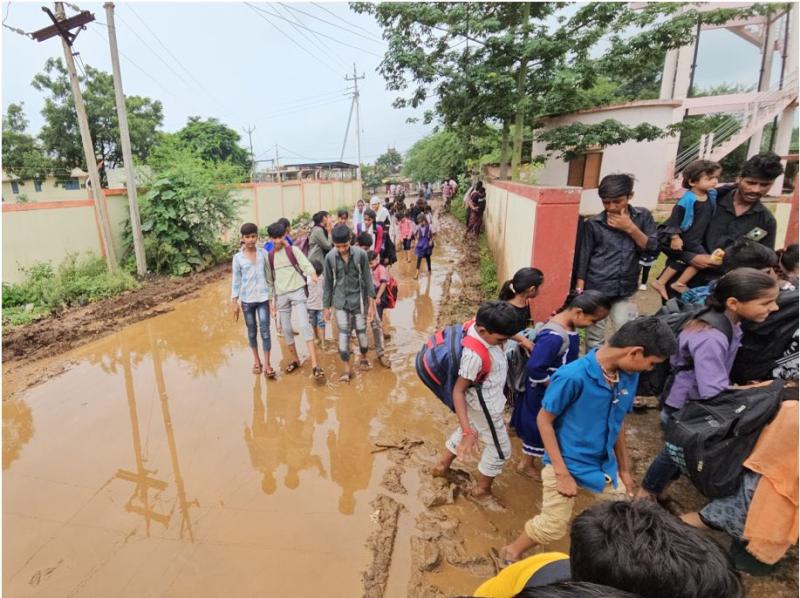 सड़क से लेकर कक्षा तक फैला पानी, अभिभावक बोले- बच्चों की सुरक्षा सबसे पहले