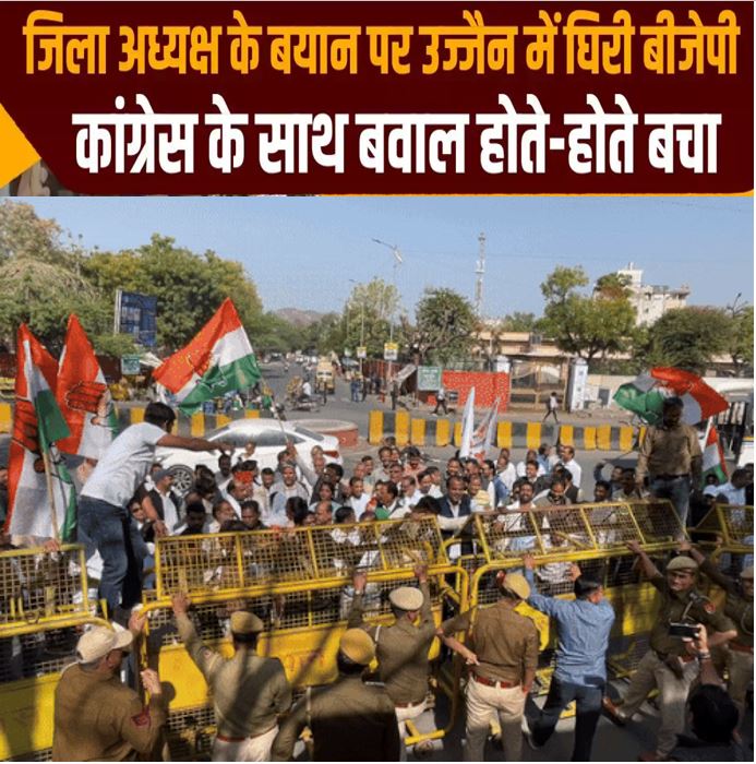 उज्जैन: महाकाल की नगरी उज्जैन में एक बार फिर से बीजेपी और कांग्रेस आमने-सामने हैं। इसे लेकर कांग्रेस ने प्रदर्शन भी किया है। बड़ी संख्या में कांग्रेस के नेता और कार्यकर्ता बीजेपी ऑफिस पहुंचे, जहां पुलिस ने उन्हें रोक दिया। प्रदर्शन को देखते हुए बीजेपी के नेता भी वहां जमा हो गए। इस दौरान दोनों पार्टी के कार्यकर्ताओं में जमकर नारेबाजी हुई। प्रशासन की टीम भी बड़ी संख्या में मौजूद थी। इसलिए विवाद की स्थिति नहीं बनी और जल्द ही मामला शांत हो गया।