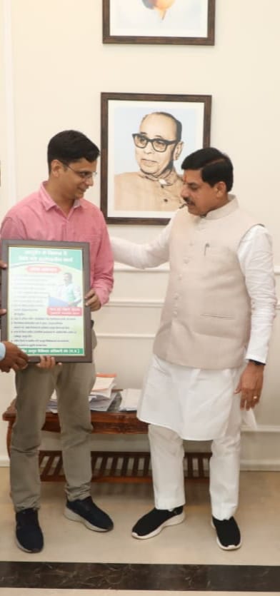 भोपाल। मध्यप्रदेश के मुख्यमंत्री डॉ. मोहन यादव से राजपत्रित आयुष चिकित्सा अधिकारी संघ के प्रतिनिधि मंडल ने उनके निवास पर भेंट की। प्रतिनिधि मंडल ने प्रदेश में नवीन आयुर्वेद कॉलेजों की स्थापना तथा आयुष पद्धतियों के समग्र विकास के लिए मुख्यमंत्री जी का अभिनंदन किया एवं संघ के आगामी अधिवेशन हेतु आमंत्रण भी प्रदान किया। माननीय मुख्यमंत्री जी ने आयुष विभाग के चिकित्सा अधिकारियों द्वारा किए जा रहे रुग्ण परीक्षण, वेलनेस सेवाओं, ओपीडी व आईपीडी में निरंतर वृद्धि तथा आयुष विभाग को प्राप्त स्कॉच अवार्ड की सराहना की। उन्होंने संघ के अधिवेशन में सम्मिलित होने हेतु अपनी सहमति भी प्रदान की। मुख्यमंत्री जी ने सचिव महोदय से चर्चा उपरांत अधिवेशन एवं वैज्ञानिक संगोष्ठी की नई तिथि शीघ्र निर्धारित करने का आश्वासन दिया।