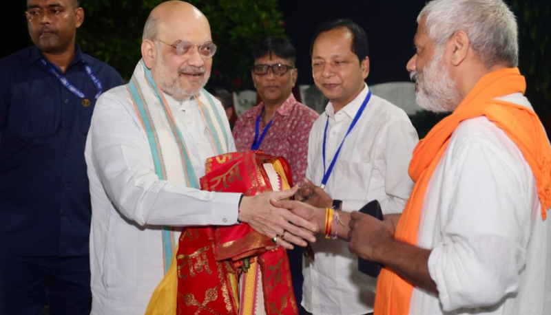 शाह ने पंडाल में देवी दुर्गा की पूजा भी की