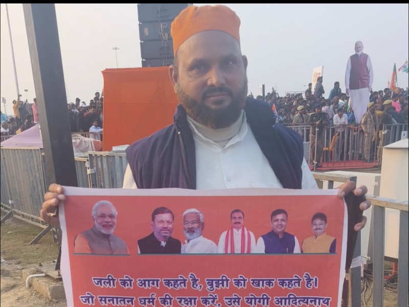 प्रधानमंत्री नरेंद्र मोदी के लखनऊ दौरे और ‘राष्ट्र प्रेरणा स्थल’ के उद्घाटन के मौके पर एक ऐसी कहानी सामने आई, जो राजनीतिक ध्रुवीकरण के बीच साम्प्रदायिक सद्भाव और व्यक्तिगत आस्था की मिसाल पेश करती है. मिर्जापुर के रहने वाले मुस्लिम युवक तौकीर अहमद, प्रधानमंत्री मोदी को देखने और उनके समर्थन के लिए सैकड़ों किलोमीटर का सफर तय कर लखनऊ पहुंचे. उनके हाथ में एक बड़ा पोस्टर था, जिसमें पीएम नरेंद्र मोदी, सीएम योगी आदित्यनाथ, यूपी सरकार के मंत्री स्वतंत्र देव सिंह सहित कई भाजपा नेताओं की तस्वीरें लगी हुई थीं |