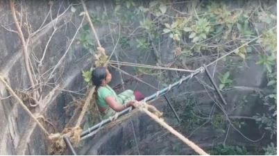 रस्सी के सहारे लटकी रही जिंदगी